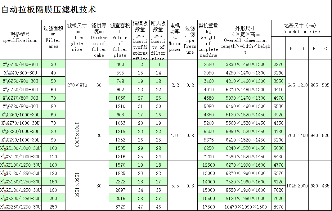 产品介绍:产品简介 隔膜压滤机是由隔膜滤板(隔膜滤板是由两片聚丙烯膜片与高强度聚丙烯芯板热融合而成)和厢式滤板排列组成滤室,在输料泵的压力作用下将料将输入滤室,通过滤布将料浆